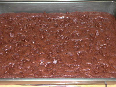 Sprinkle a layer of chocolate chips over the prepared mixture.