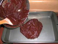 Spread mixture into prepared baking pan.