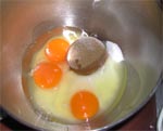 Remove the top part of the double boiler from the bottom and cool the chocolate-butter mixture for 10-15 minutes until tepid. Just about enough time to complete the next steps.