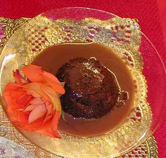 Warm Chocolate Souffle Pudding with Milk Chocolate Sauce