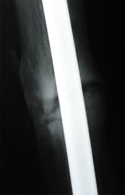 Heck, even I am starting to think the backside is really healing. The later x-ray, on the right, is a little darker, but shows some organized remodeling along what represents the back of the leg. The doctor argues that healing starts there and works it way around to the front. I will have a front x-ray next time. In the meantime he takes it as good signs that I am feeling a little better, certainly not worse, and that the x-ray looks better and not worse. Such optimism. I also think I am reabsorbing some of that stray bone in the muscle as well.